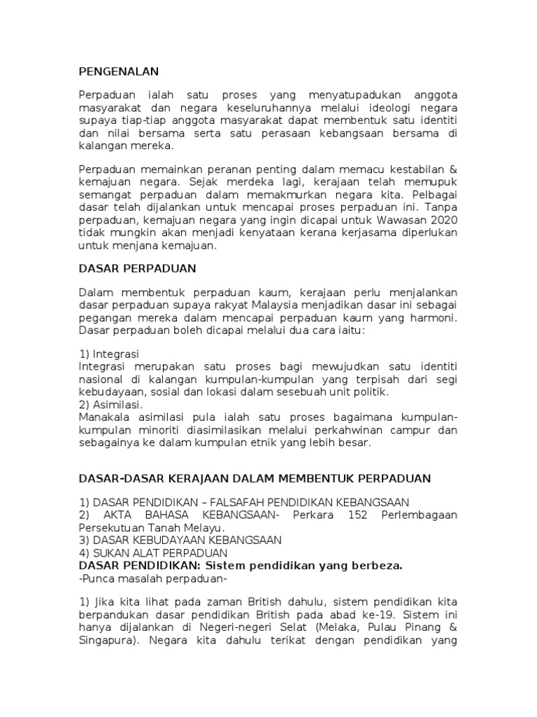 Doc Sistem Pendidikan Malaysia Dan Perpaduan Kaum 1 0 Konsep Masyarakat Di Malaysia Liyana Afiqah Academia Edu